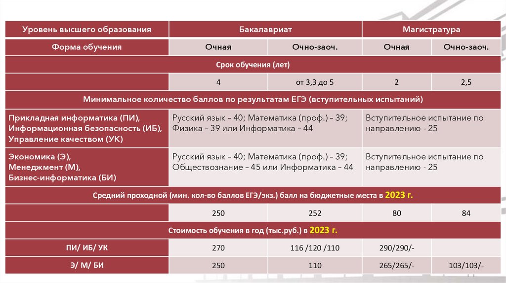 Средний проходной (мин. кол-во баллов ЕГЭ/экз.) балл на бюджетные места в 2023 г.