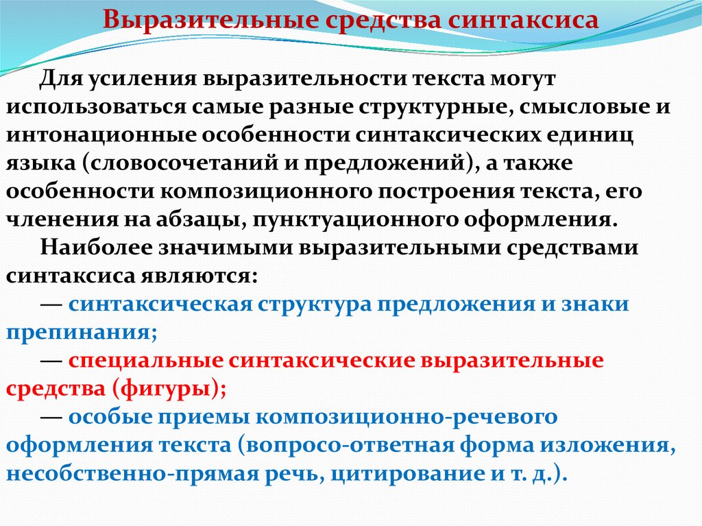 Выразительные средства синтаксисаДля усиления выразительности текста могут