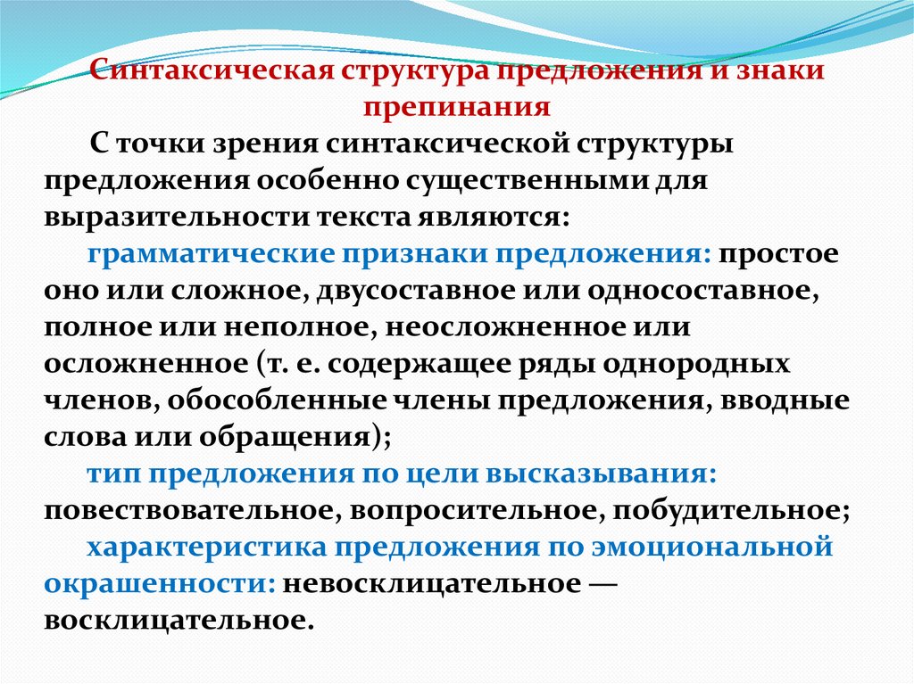 Синтаксическая структура предложения и знакипрепинания