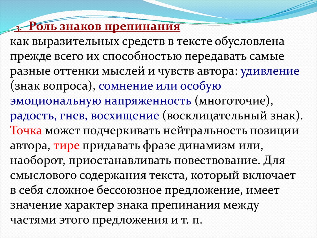 Роль знаков препинаниякак выразительных средств в тексте обусловлена