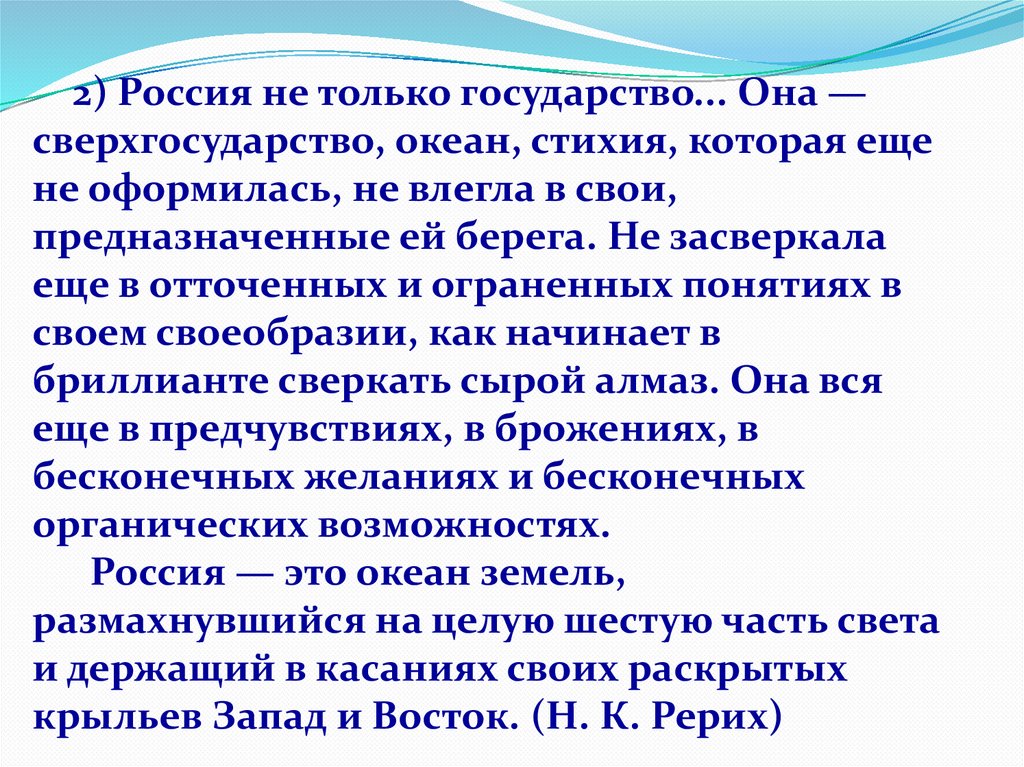 4) О ты, Родина! ...Ты, безмерная, к тебе припадает усталый и загнанный, и своих