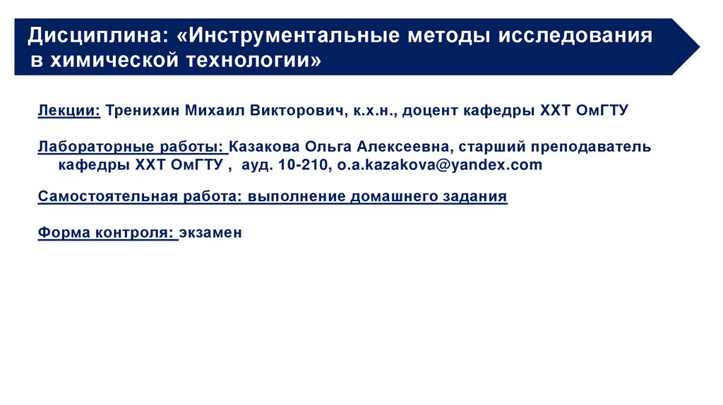 Дисциплина: «Инструментальные методы исследованияв химической технологии»