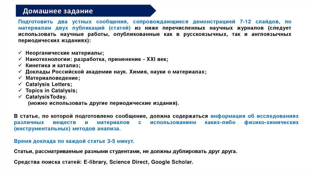 Время доклада по каждой статье 3-5 минут.