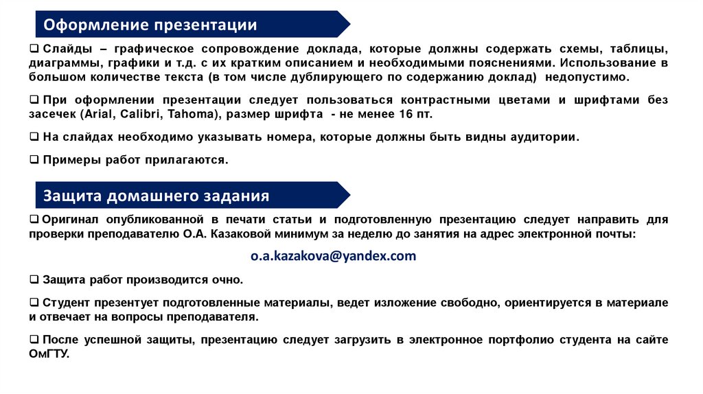 проверки преподавателю О.А. Казаковой минимум за неделю до занятия на адрес электронной почты:
