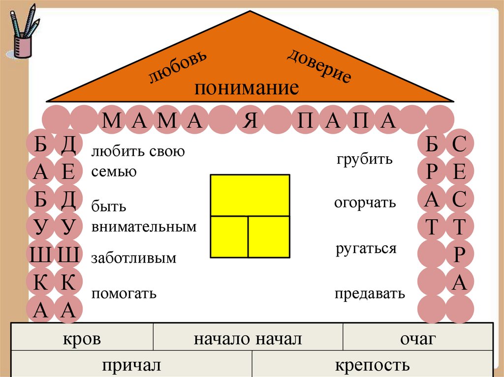 Это общие интересы всей семьи: этолюбовь, верность, доверие, уважение,