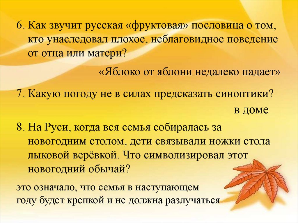 6. Как звучит русская «фруктовая» пословица о том,кто унаследовал плохое, неблаговидное поведение