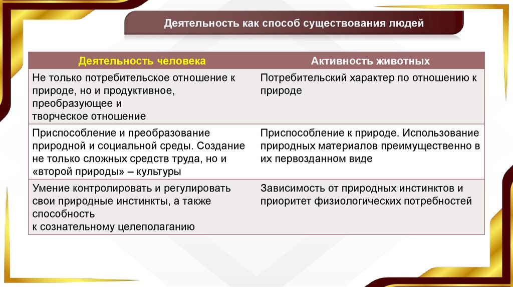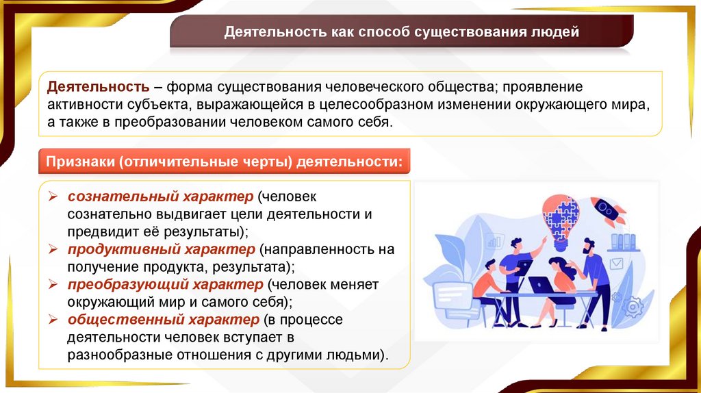 Деятельность как способ существования людейДеятельность – форма существования человеческого общества; проявление