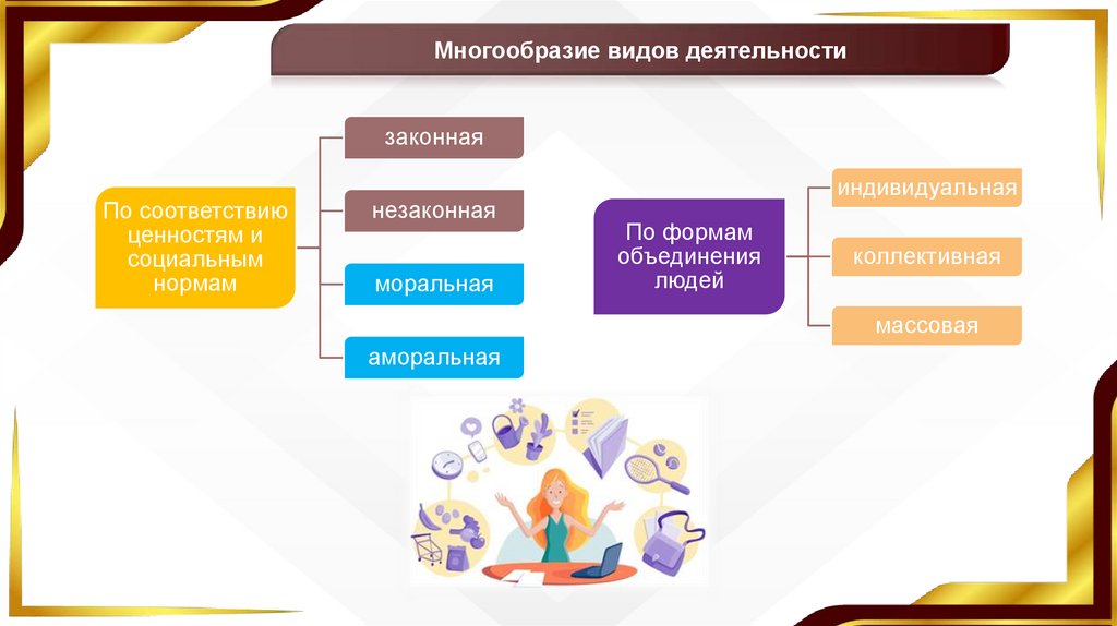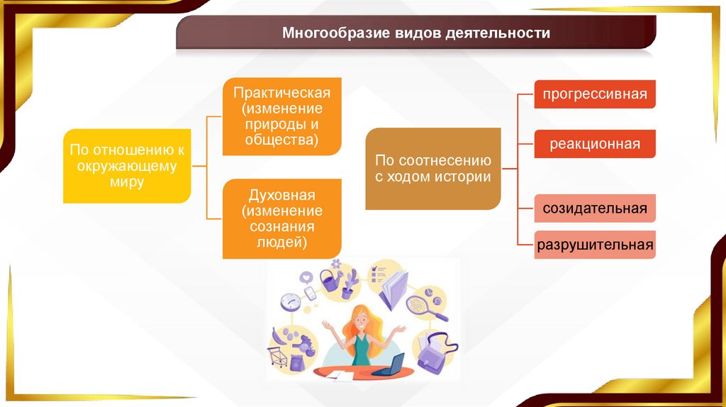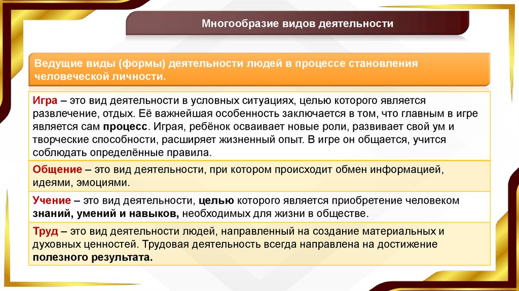 Многообразие видов деятельностиВедущие виды (формы) деятельности людей в процессе становления