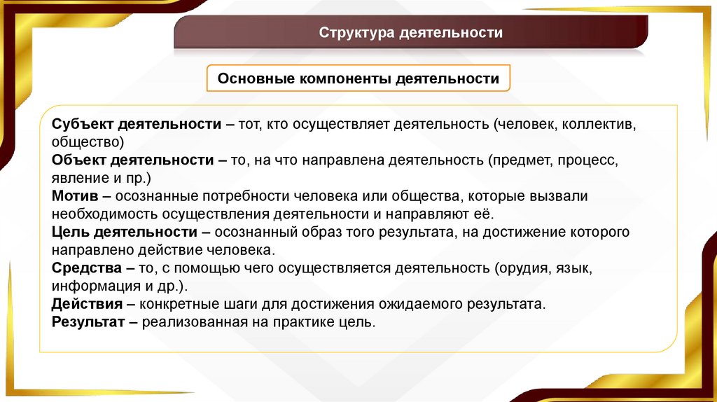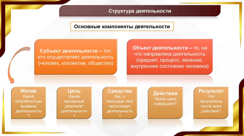 Субъект деятельности – тот, кто осуществляет деятельность (человек, коллектив,