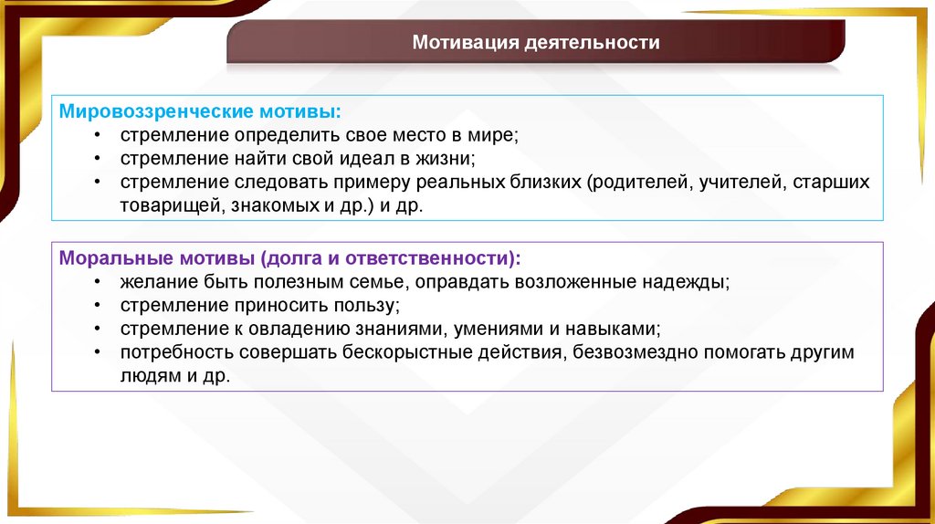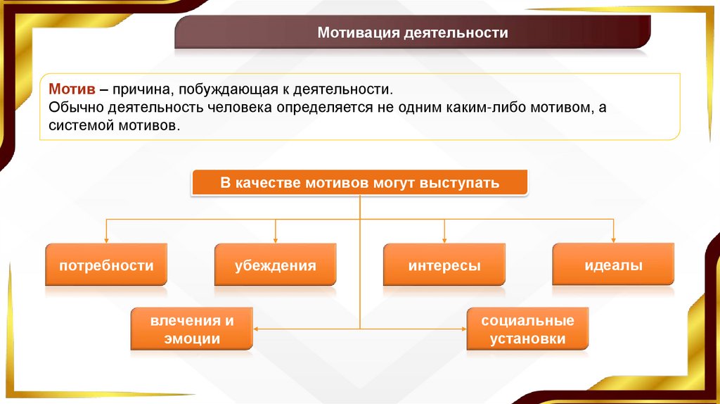 Мотивация деятельностиМотив – причина, побуждающая к деятельности.