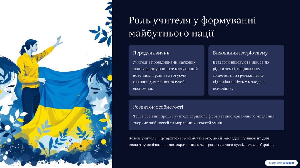 майбутнього нації, формуючи не лише знання, але й цінності, характер та