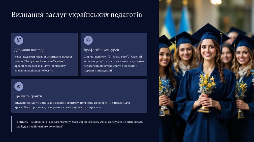 "Учитель – це людина, яка віддає частину свого серця кожному учню, формуючи не лише розум,
