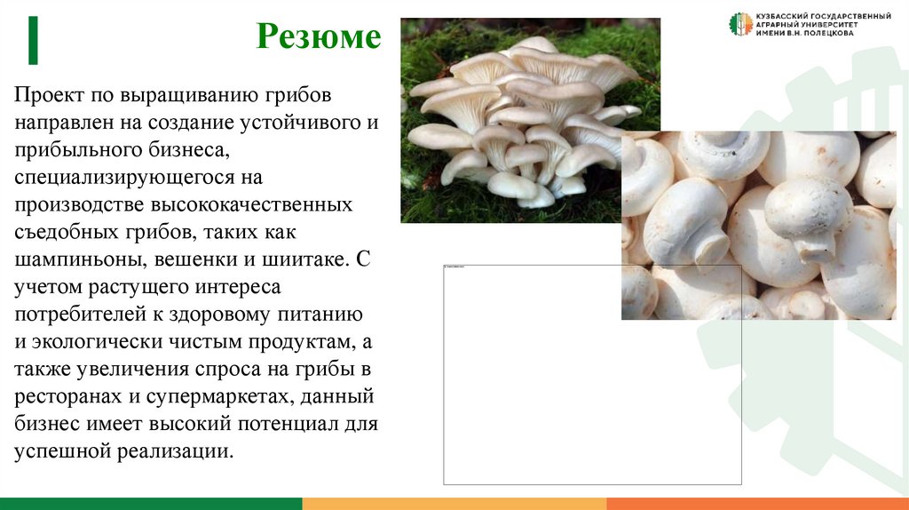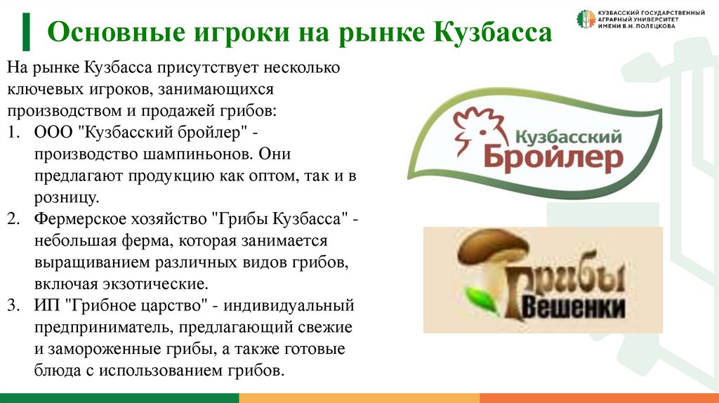 1. ООО "Кузбасский бройлер" производство шампиньонов. Они
