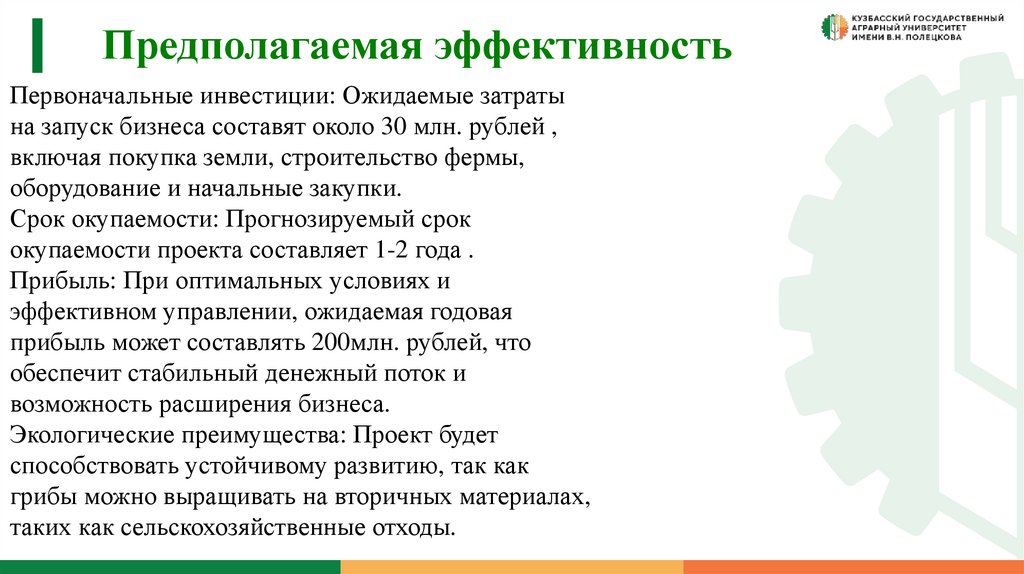 Предполагаемая эффективностьПервоначальные инвестиции: Ожидаемые затраты