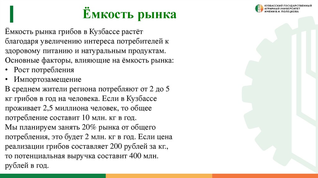 Ёмкость рынкаЁмкость рынка грибов в Кузбассе растёт