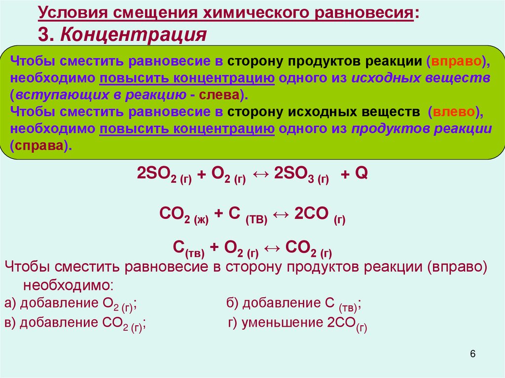 Чтобы сместить равновесие в сторону исходных веществ (влево),