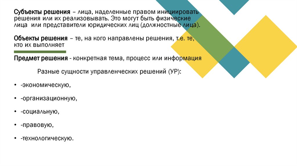 Объекты решения – те, на кого направлены решения, т.е. те,