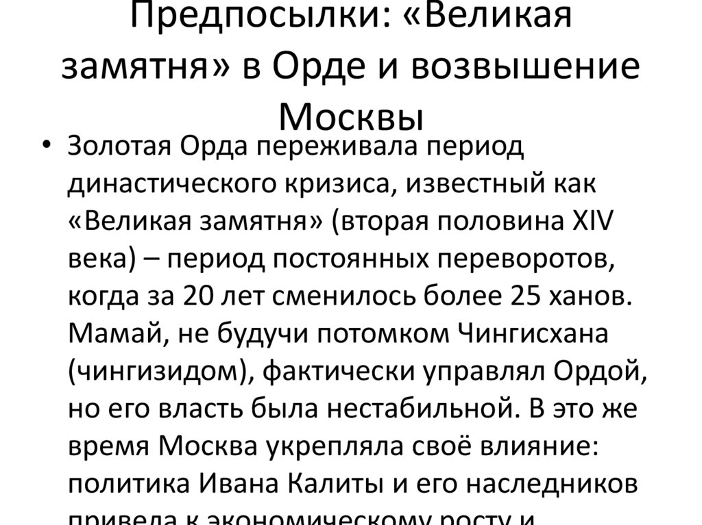 Предпосылки: «Великаязамятня» в Орде и возвышение