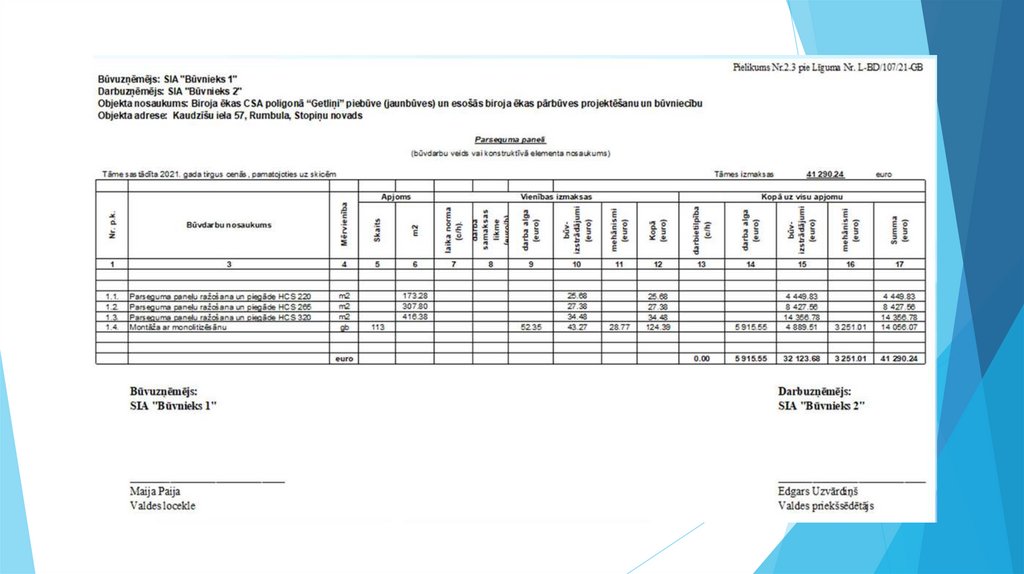 • Cenrādis, tāme vai maksājumu grafiki – nosaka