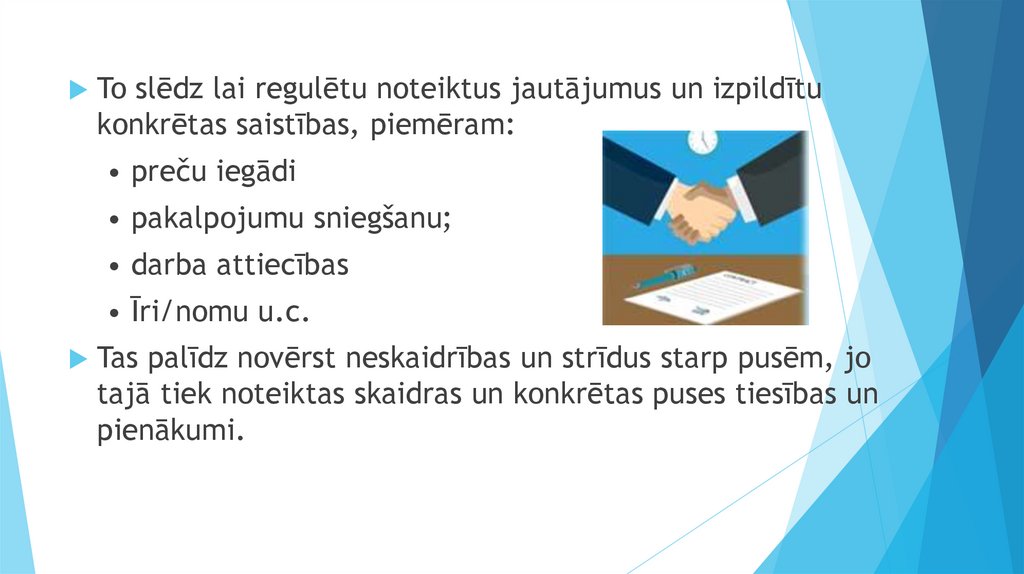 To slēdz lai regulētu noteiktus jautājumus un izpildītukonkrētas saistības, piemēram: