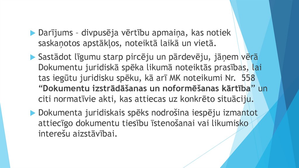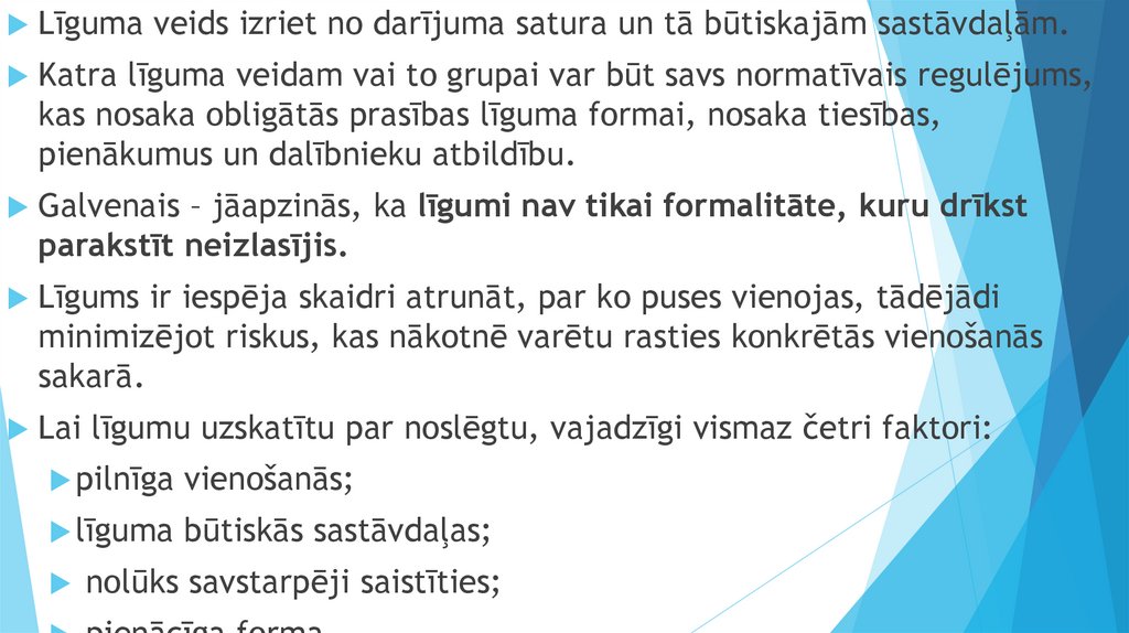 Līgums ir tiesisks darījums – atļautā kārtā izdarītadarbība tiesisku attiecību nodibināšanai,