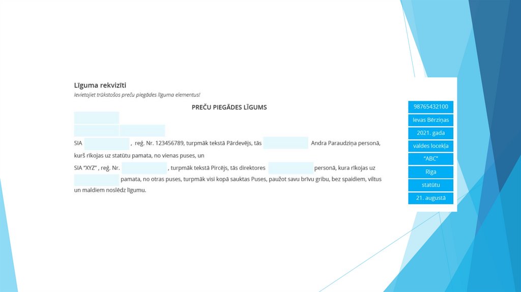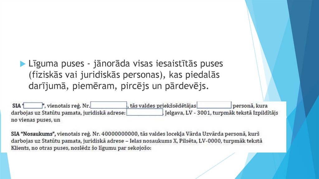Līguma puses - jānorāda visas iesaistītās puses(fiziskās vai juridiskās personas), kas piedalās