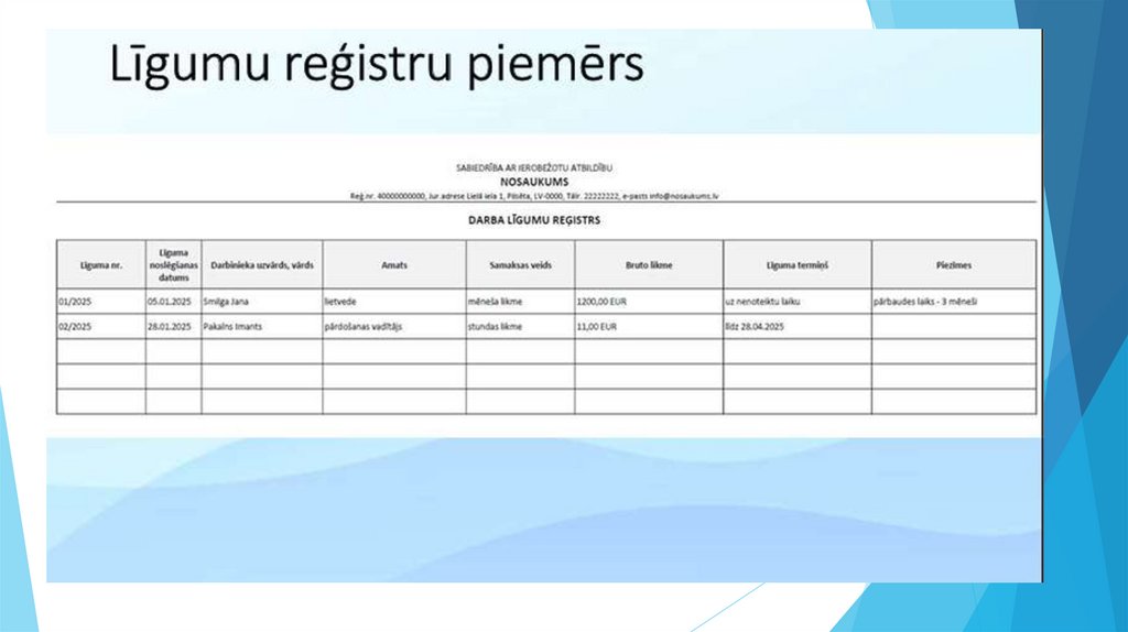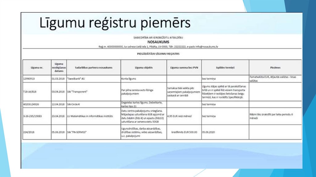 1. Katru līgumu reģistrē žurnālā2. Papīra un elektroniskie līgumi jāuzskaita atsevišķi