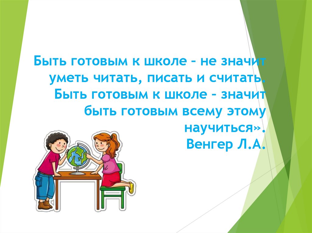1. Быть готовым к школе – не значит уметь читать, писать и считать. Быть готовым к школе – значит быть готовым всему этому
