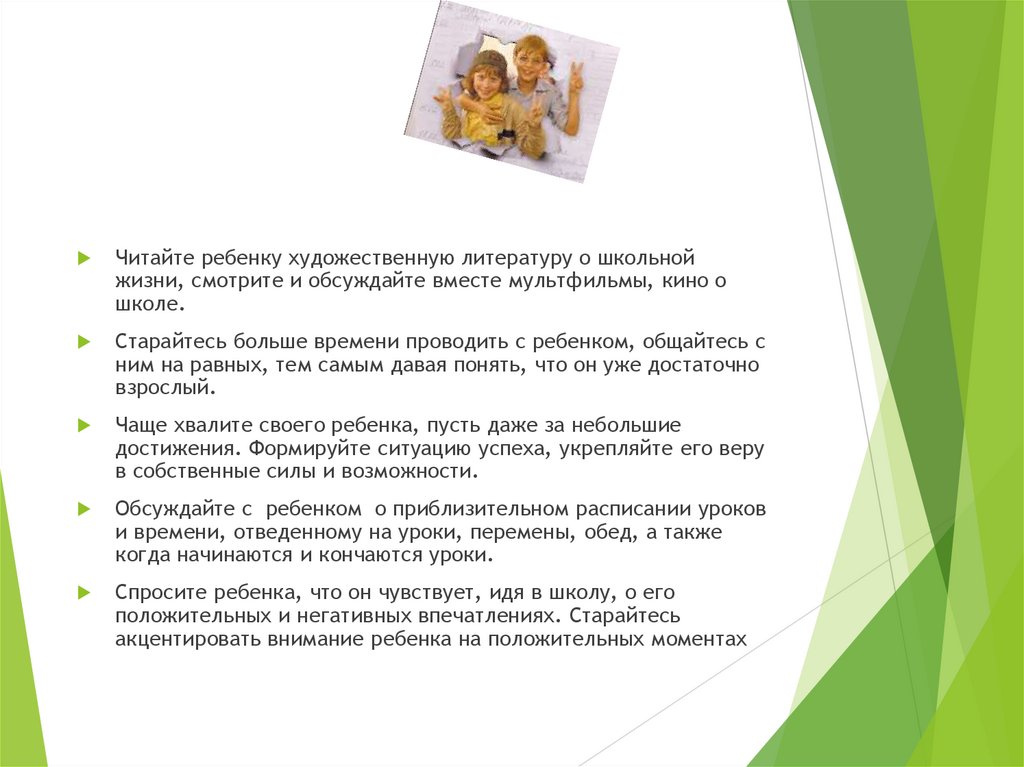 Читайте ребенку художественную литературу о школьнойжизни, смотрите и обсуждайте вместе мультфильмы, кино о