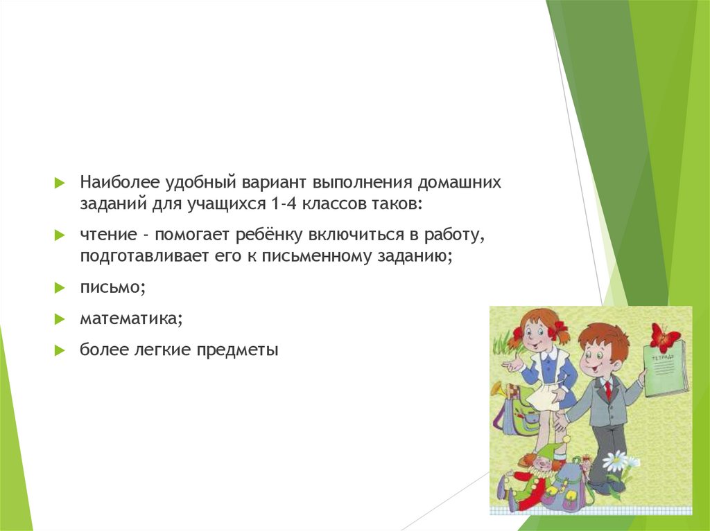 Наиболее удобный вариант выполнения домашнихзаданий для учащихся 1-4 классов таков: