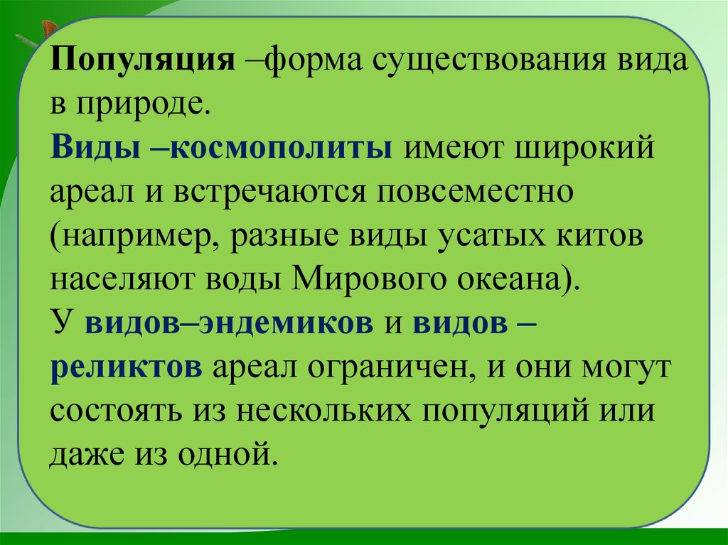 • Это совокупность особей одного вида,длительно населяющих конкретную