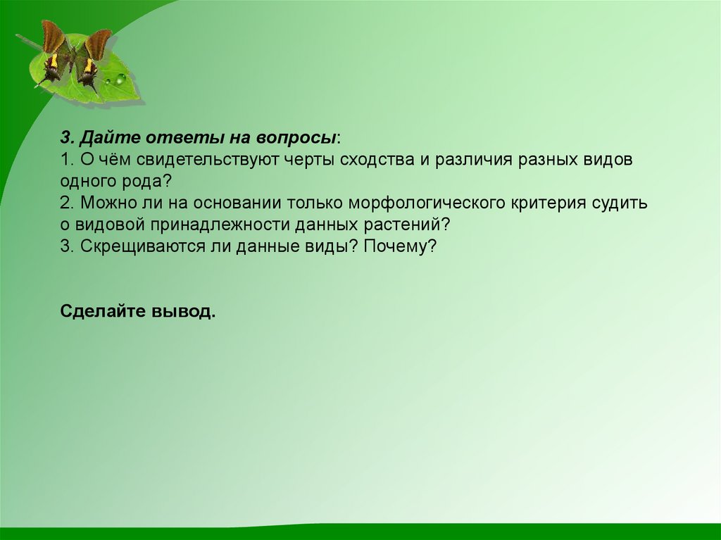 3. Дайте ответы на вопросы:1. О чём свидетельствуют черты сходства и различия разных видов