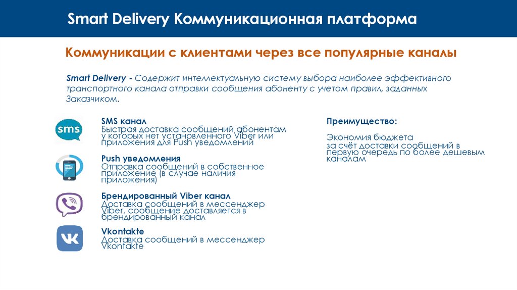 Smart Delivery Коммуникационная платформаКоммуникации с клиентами через все популярные каналы