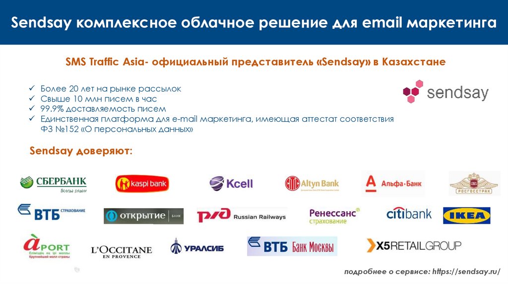 Sendsay комплексное облачное решение для email маркетингаSMS Traffic Asia- официальный представитель «Sendsay» в Казахстане