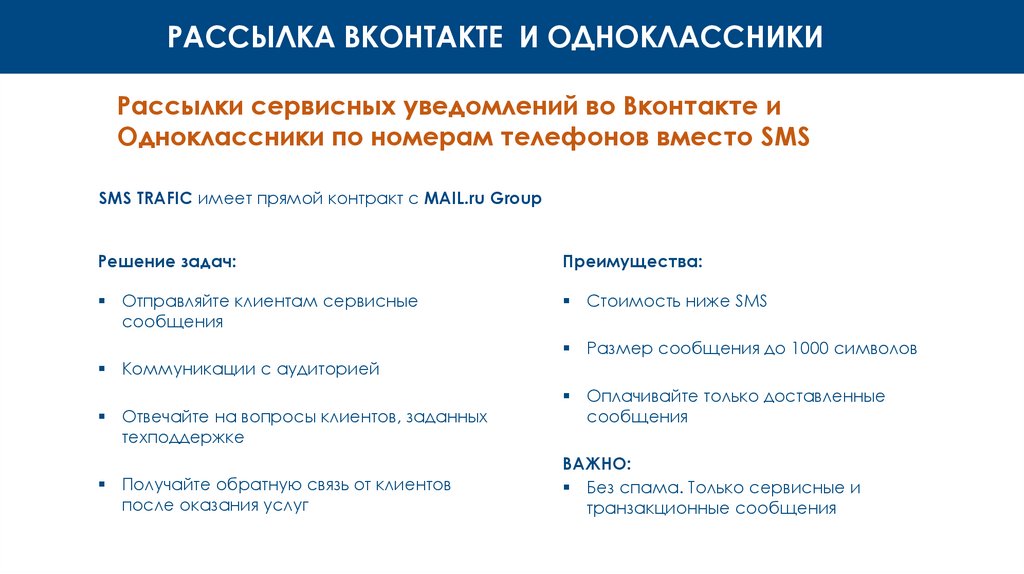 РАССЫЛКА ВКОНТАКТЕ И ОДНОКЛАССНИКИРассылки сервисных уведомлений во Вконтакте и