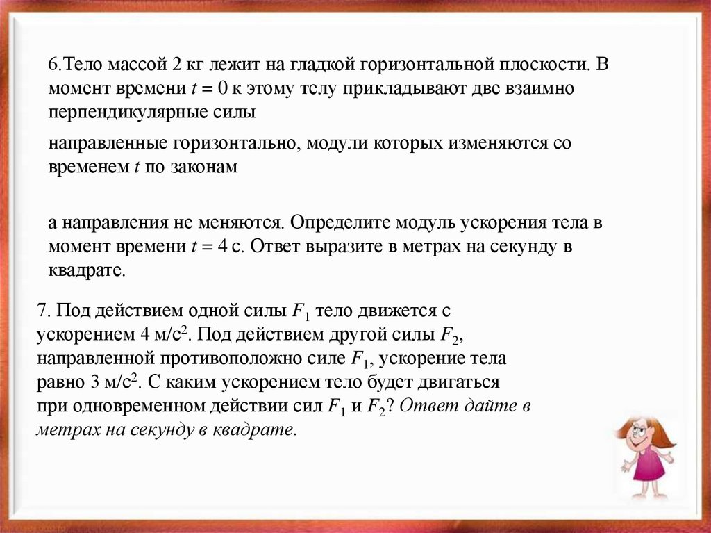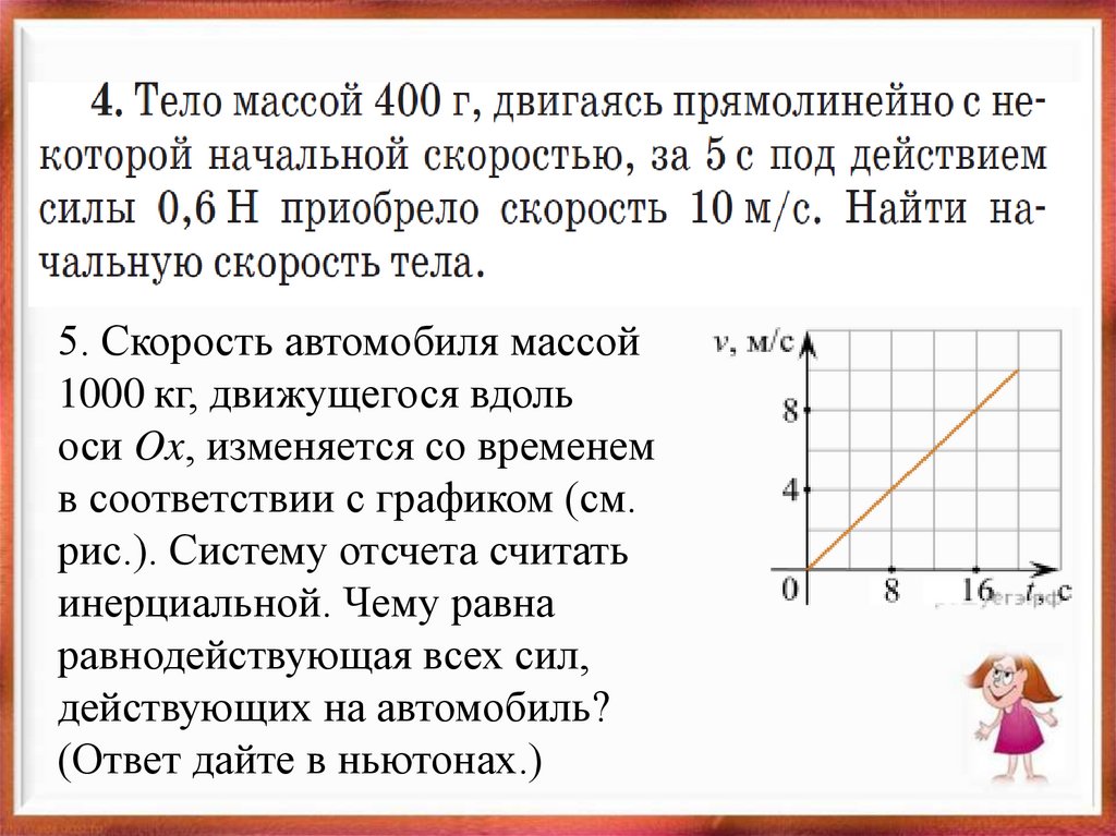 • Брусок массой 5 кгначинает движение по
