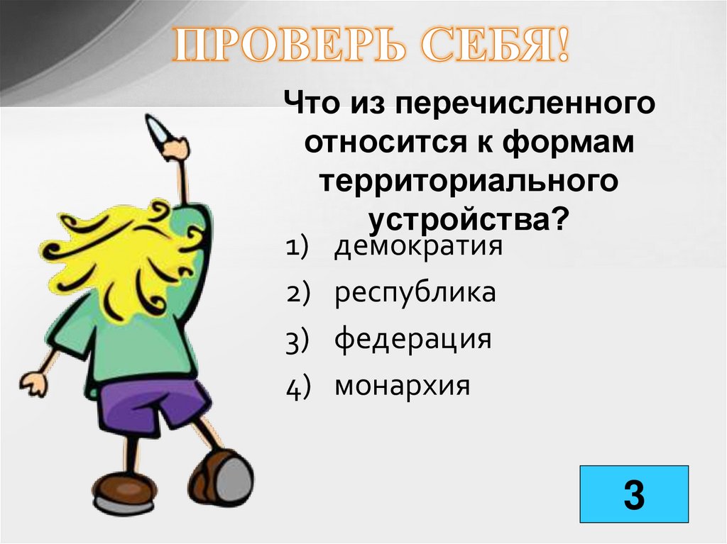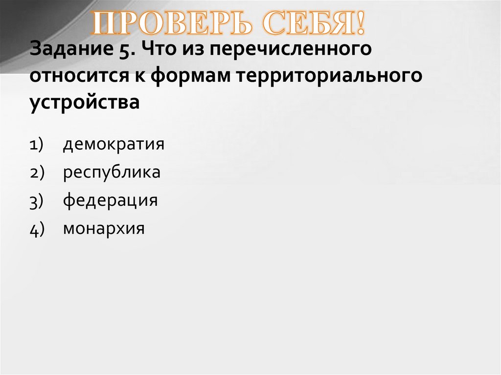 18. Задание 5. Что из перечисленного относится к формам территориального устройства