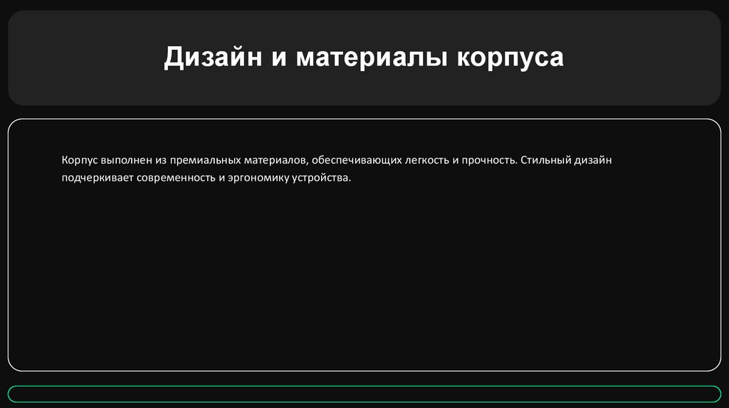 Дизайн и материалы корпусаКорпус выполнен из премиальных материалов, обеспечивающих легкость и прочность. Стильный дизайн