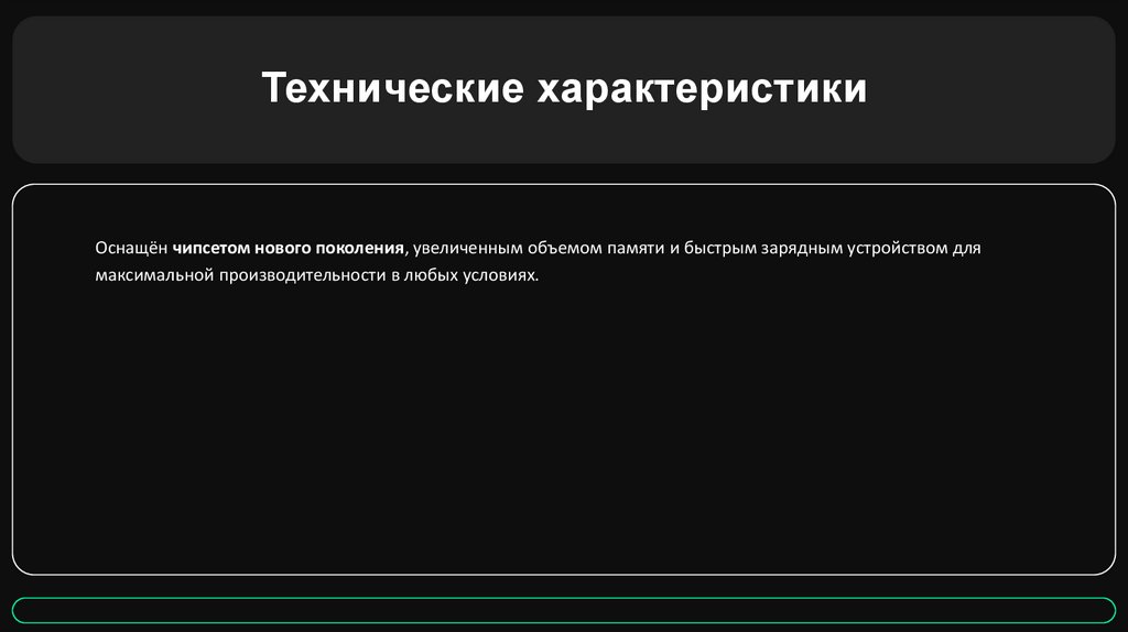 Технические характеристикиОснащён чипсетом нового поколения, увеличенным объемом памяти и быстрым зарядным устройством для