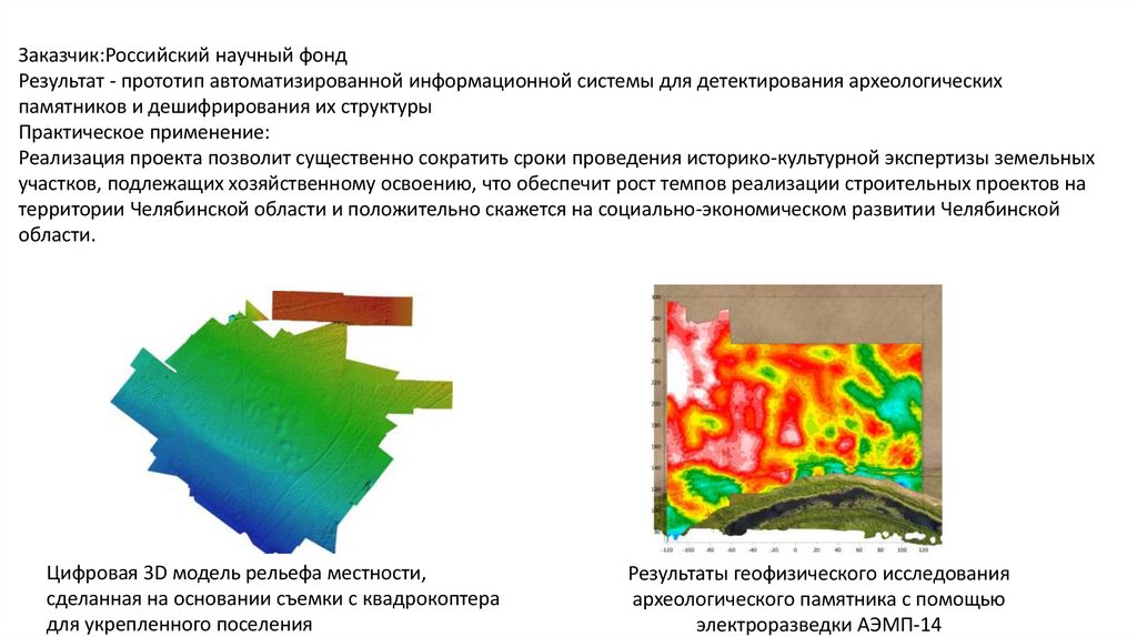 Заказчик:Российский научный фондРезультат - прототип автоматизированной информационной системы для детектирования археологических