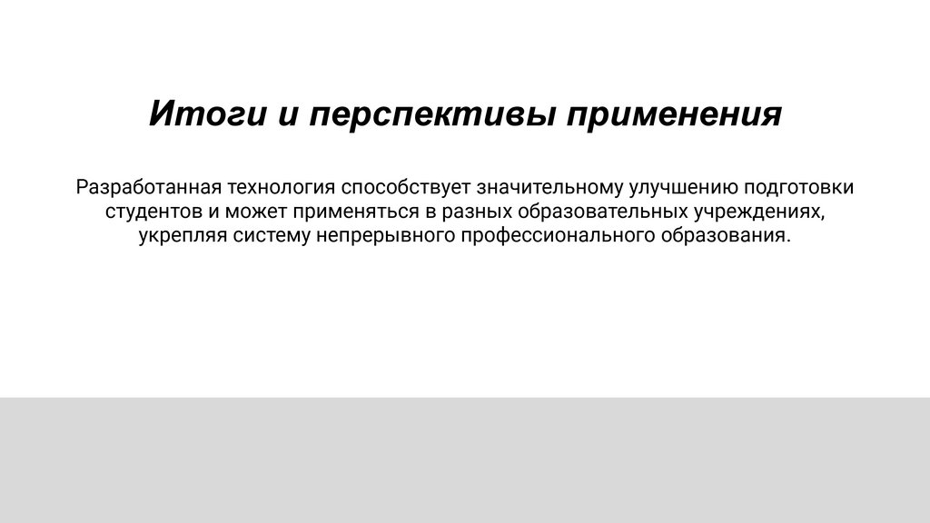 Итоги и перспективы примененияРазработанная технология способствует значительному улучшению подготовки