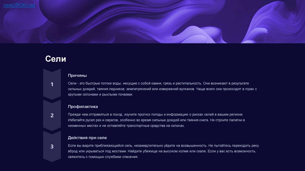 Прежде чем отправиться в поход, изучите прогноз погоды и информацию о рисках селей в вашем регионе.