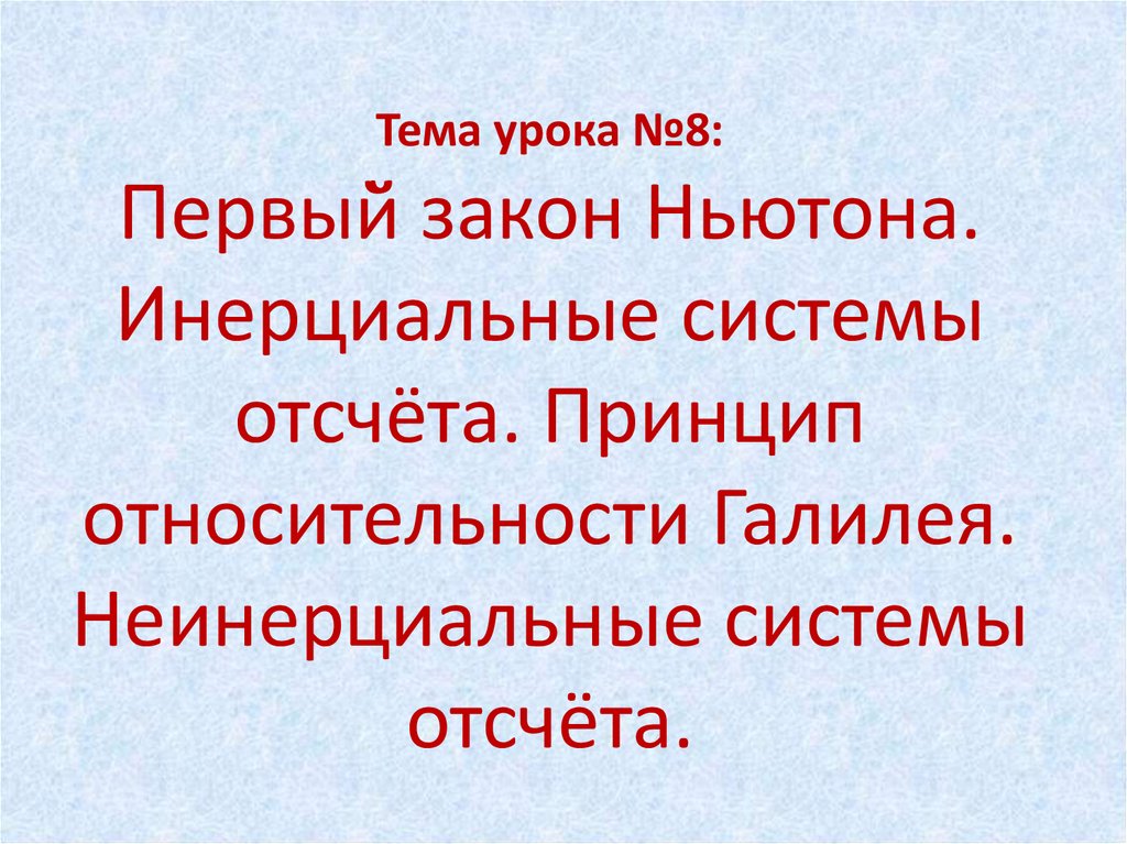 Урок 8. Первый̆ закон Ньютона. Инерциальные системы отсчёта. Принцип относительности