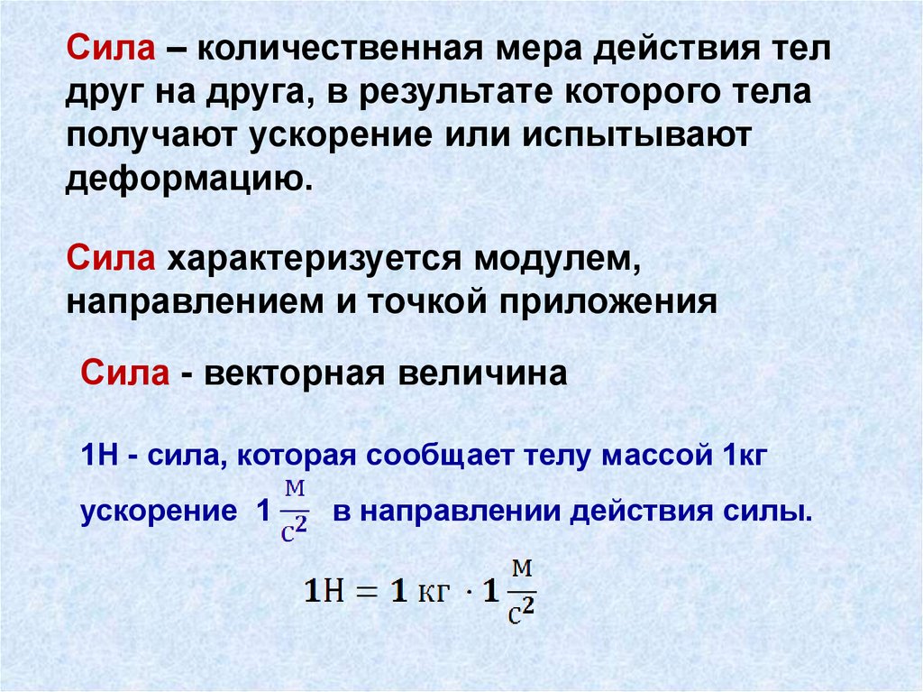 Сила – количественная мера действия телдруг на друга, в результате которого тела