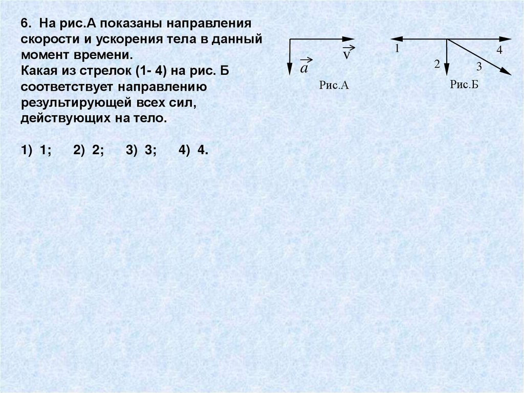 6. На рис.А показаны направленияскорости и ускорения тела в данный