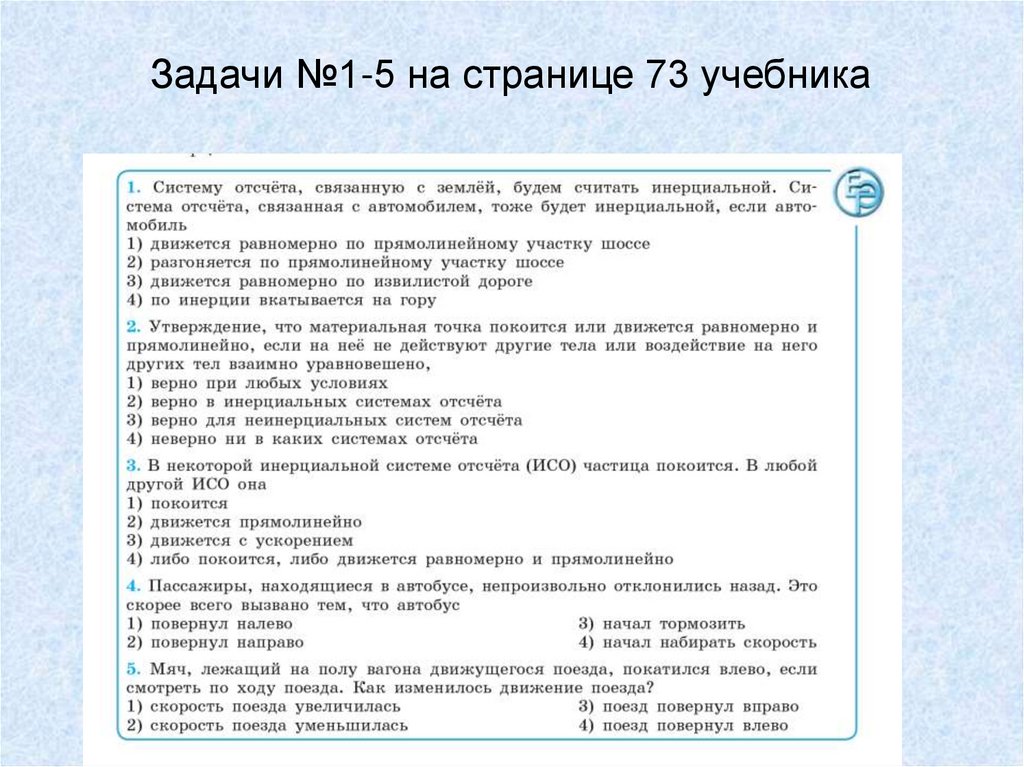 Задачи №1-5 на странице 73 учебника28. Домашнее задание