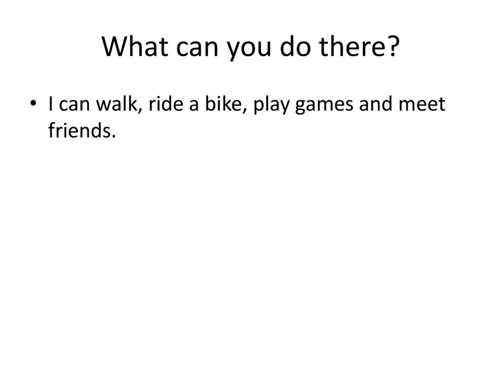 What can you do there?• I can walk, ride a bike, play games and meet