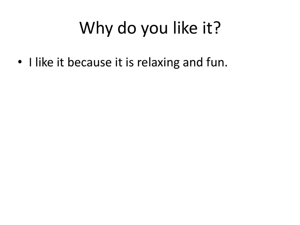 Why do you like it?• I like it because it is relaxing and fun.