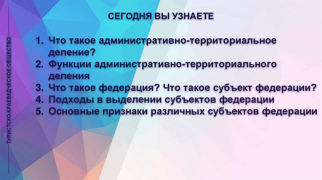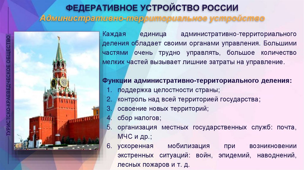 ТУРИСТСКО-КРАЕВЕДЧЕСКОЕ ОБЩЕСТВОФЕДЕРАТИВНОЕ УСТРОЙСТВО РОССИИ