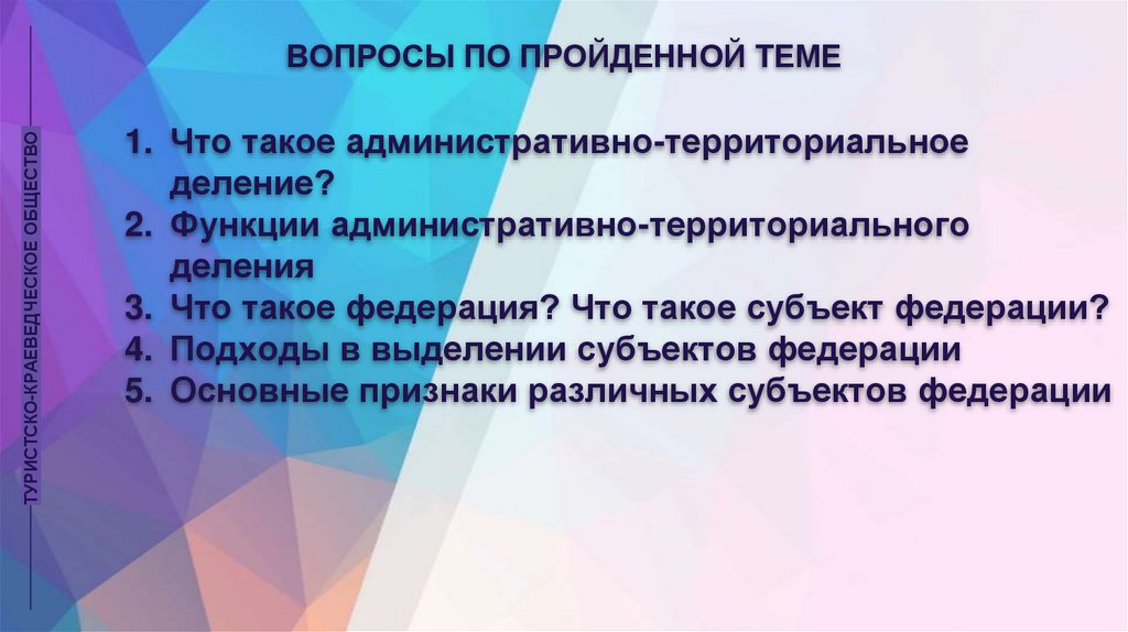 ТУРИСТСКО-КРАЕВЕДЧЕСКОЕ ОБЩЕСТВОВОПРОСЫ ПО ПРОЙДЕННОЙ ТЕМЕ